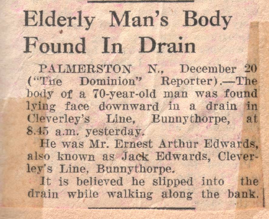 2Shiels, Heather, Newspapers - New Zealand, Auckland, Auckland, North Sho...Advertiser, 23 Jul 1998, Shon R. Edwards, 1039 N 2575 W, Layton, UT 84041-7709, U.S.A. "He [Felix Franklin] is the last alive of 12 brothers and sisters. His brother George died a few years ago, aged just months off his 100th birthday...Mr. Franklin married Roy Edgar in 1921 and had two children, daughters Ivor and Betty... [Ivor] married, had two children, and died 19 years ago [1979]. His wife Roy died 17 years ago [1981]...He has five grandchildren and four great grandchildren.". An article sent by Lynda Robinson in New Zealand.