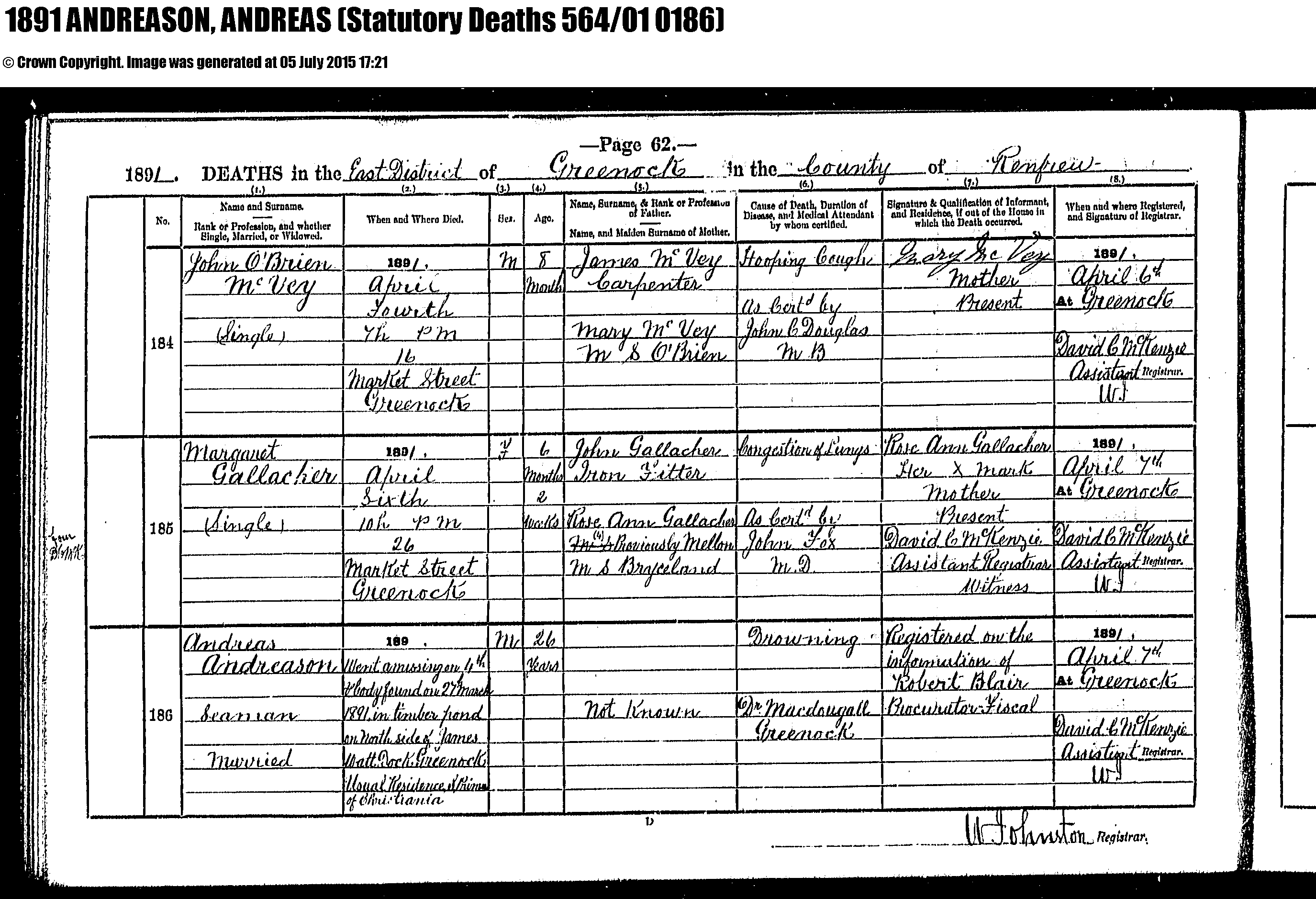 2Scotland, Scotland - Church Records - Scotland's People - Statutory Registers, 07 Apr 1891, Scotland's People. Image.