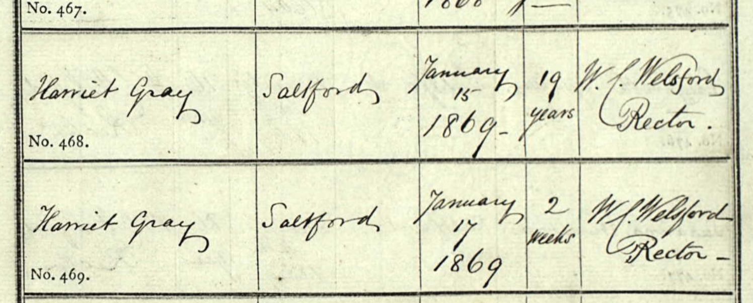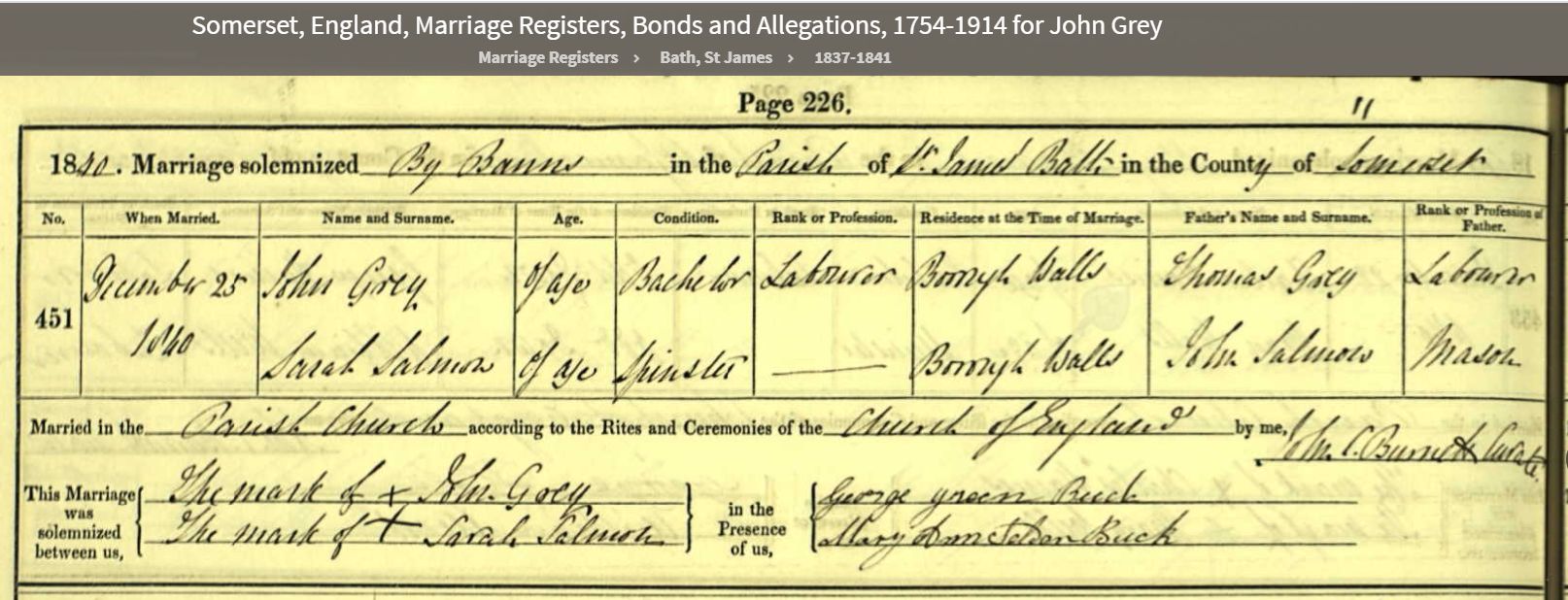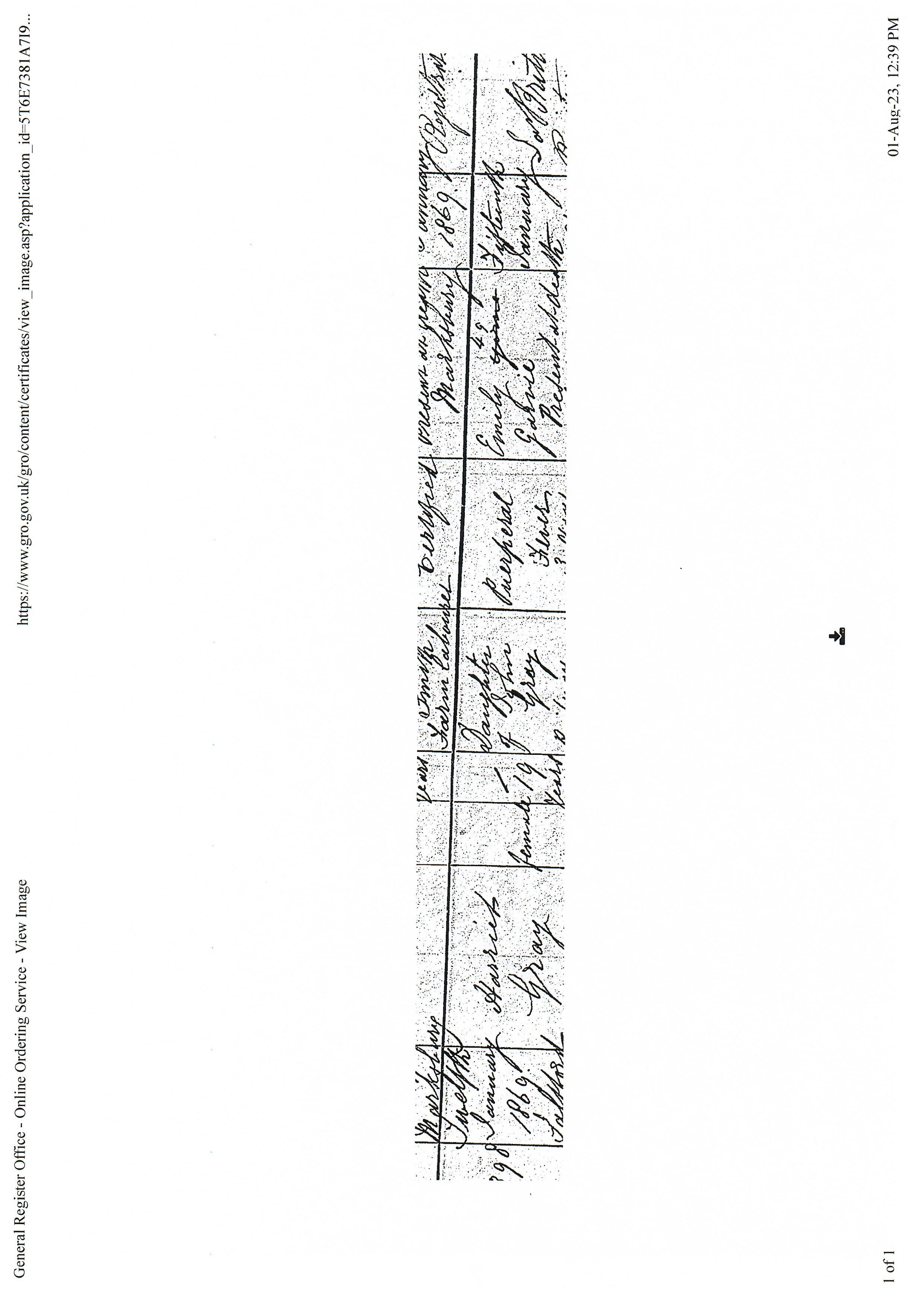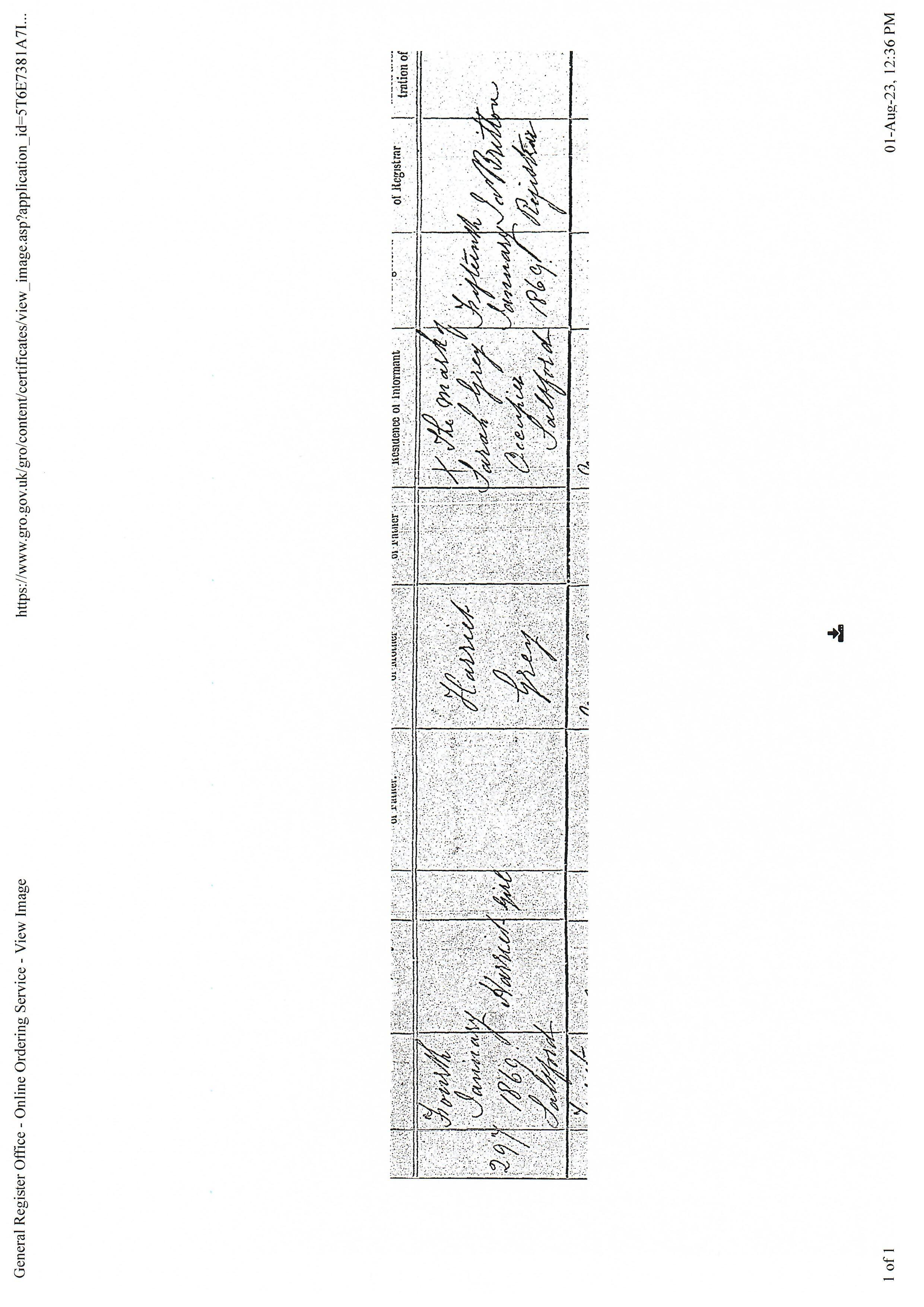 13General Register Office, England - Civil Registration - Births (1837-present), Application number 6444931-1, 21 Mar 1886, General Register Office, PO Box 2, Southport Merseyside, PR8 2JD, United Kingdom. www.gov.uk, certificate.services@gro.gsi.gov.uk. "no. 65 died 21 Mar 1886 Saltford, John Gray, Male, 68 years, Railway Platelayer, cause of death bronchitis 6 days certified by RW ... MRES. Informant: Emily Gray, daughter present at the death, Saltford. Registered 24 Mar 1886, Charles Glover, registrar." Image.
