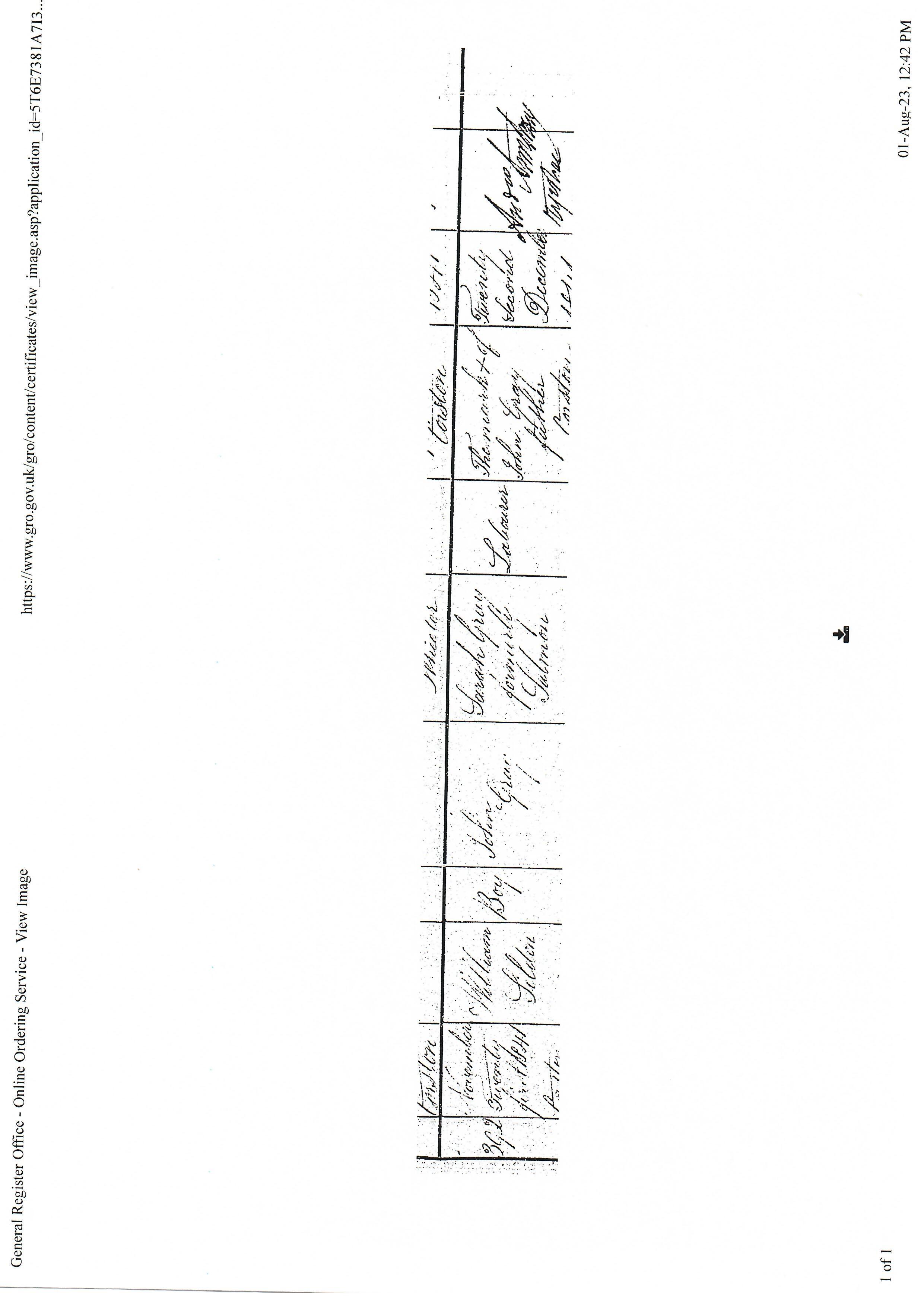 2Tombstone of John Grey, 02 Feb 2021, Fiona Gilliver, New Zealand. Electronic scan of color copy in pos. of Shon R. Edwards. Image.