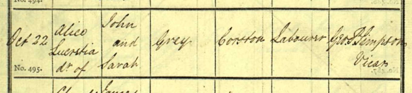 11Church of England, Church Records - England, Yorkshire, York, Sampson - Parish Records (Yorkshire, England), image 18, pg. a, Internet. https://search.findmypast.com/record?id=GBPRS%2FYORKSHIRE%2F007569107%2F00020&parentid=GBPRS%2FYORKSHIRE%2FBAP%2F302548911. Image.
