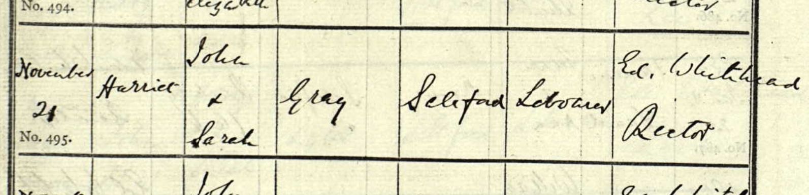 3Parish Register, St James the Great, Lower Hutt., on baptism record of 22 Feb 1852.