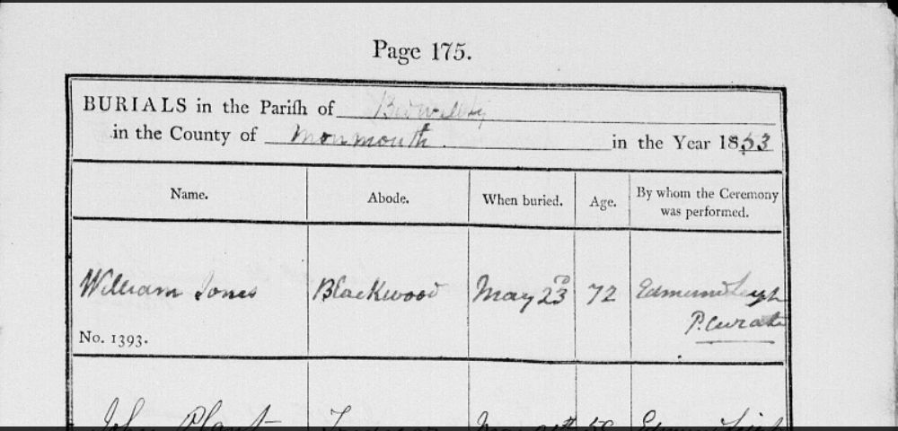 2Church Records - Cymru, Monmouthshire, Bedwellty - Parish Records (Parish Registers), p. 175, Internet, www.findmypast.co.uk. Online Welsh church registers. https://search.findmypast.com/record?id=GBPRS/WAL/4393241/00113&parentid=GBPRS/D/912061702/1. Image.