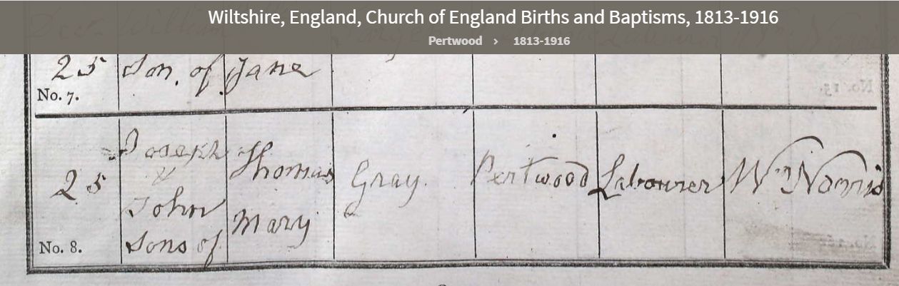 3Church of England, Church Records - England, Wiltshire, Pertwood (Upper) - Bishop's Transcripts, FHL 1,279,419. also:  https://www.familysearch.org/ark:/61903/3:1:3Q9M-CSH8-599Z-9?i=302&cc=4380174&cat=442828, image 345. Image.
