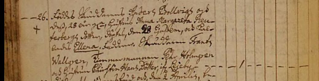 döptes den 28 ejusdem, och kallades Ellena. Faddrar Skräddaren Frantz Wallgren, Timmermannen