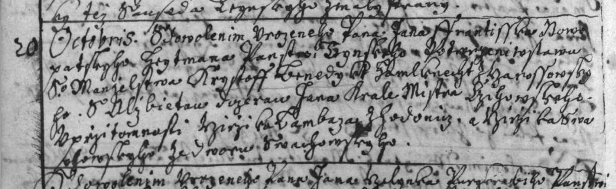 1Řimsko-katolicka cirkev, Church Records - Czech Republic, Týn nad Vltavou - Státní oblastní archiv v Třeboní, snímek 470, 20 Oct 1687, Shon R. Edwards, 1039 N 2575 W, Layton, UT 84041-7709, U.S.A. Electronic copy in pos. of Shon R. Edwards. https://digi.ceskearchivy.cz/8097/470/1082/2056/87