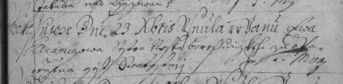 1Řimsko-katolicka cirkev, Church Records - Czech Republic, Čížová - Státní oblastní archiv v Třeboní, v. 12, p. 229, image 219, 23 Dec 1718, Shon R. Edwards, 1039 N 2575 W, Layton, UT 84041-7709, U.S.A. Electronic copy in pos. of Shon R. Edwards. "Z Borecznicz dne 23 Xbris usnula v Panu Eva Adamcowa sester Noska Boreššniczkeho za a patržena gest = From Borešnice day 23 Dec (1718) fell asleep in the Lord, Eva Adamcova, sister of (presumably head guy Nosek) Nosek from Borešnice..." http://digi.ceskearchivy.cz/index_main.php?lang=cs&menu=3&id=3036, snímek 219. Source Image. Citation Image.
