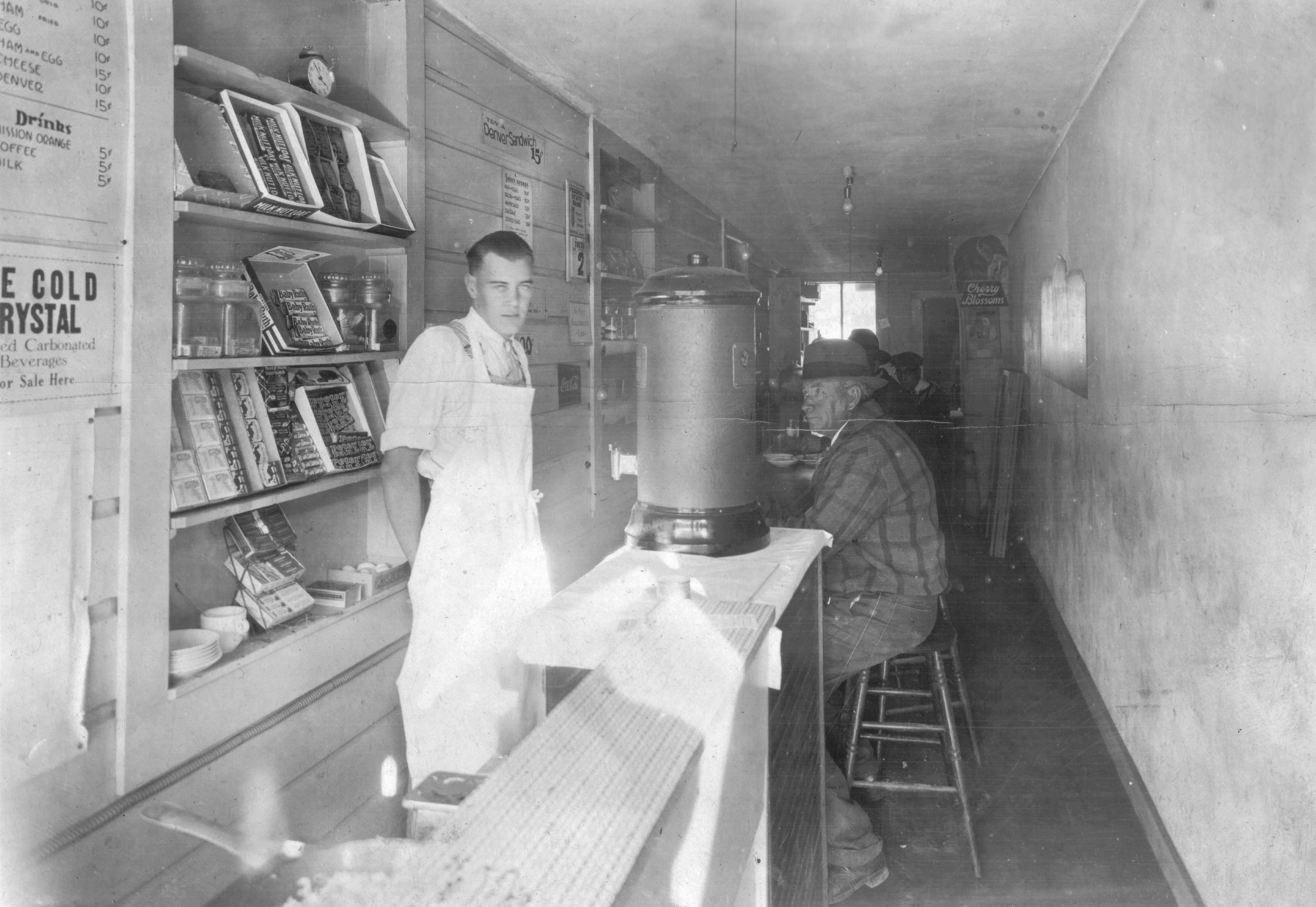 Working at a soda fountain.